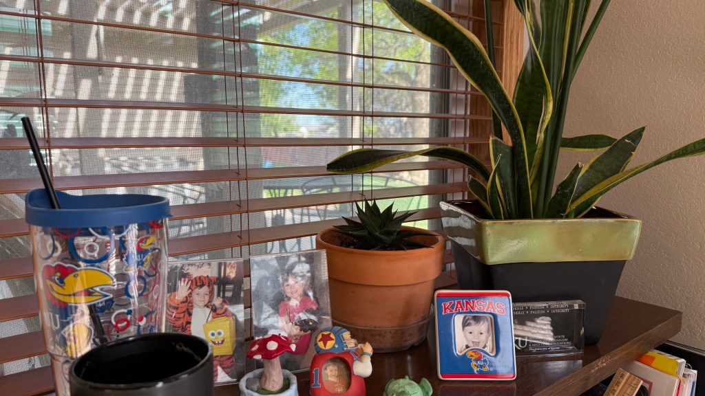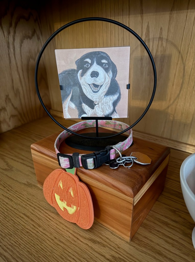 A few days ago, I began putting out my Halloween decorations. As a 50-year-old empty nester, I don’t need to do this—and some might argue I shouldn’t—but Halloween has always been one of my favorite holidays. I have such fond memories of it from childhood and of celebrating it with my own kids. What started as a plan to display a few old photos of my kids in their costumes quickly turned into a full-blown decorating session. On the built-in shelves, I decorated every corner, including two spaces where I already have photos of my mom and mother-in-law, and my sweet dog, Madeline.