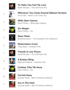 These 11 country songs fuel my 10-mile daily ride all the while generating an emotional punch that stirs up just the right amount of heartbreak, memories (good and bad,) and tearfulness. From the very first song to the last song, I experience a rollercoaster of feelings…love found, love lost, break-ups, good times, hopefulness, hopelessness, dreams shattered, dreams fulfilled and more. Yes, all good stuff! And while I only truly loved country music for a few years in the 1990s, these songs are near and dear to my heart today. I can remember exactly where I was, who I was with, and all the circumstances surrounding each song. It’s like unlocking a memory treasure chest with each pedal turn…the perfect compliment to my current midlife crisis.
